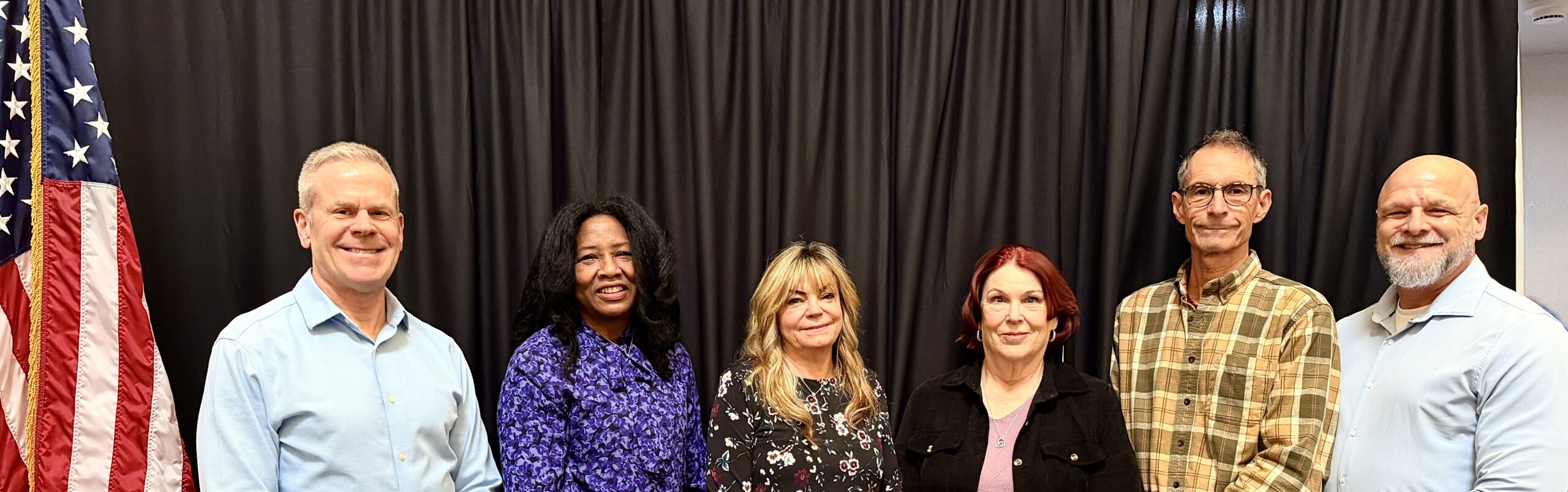 Dr. Johnson, PhD | Mrs. Lake | Ms. Barnes, President | Mrs. Harris | Mr. Morris, Vice President | Mr. Pelovsky (Not Pictured) | Dr. Walp, PhD