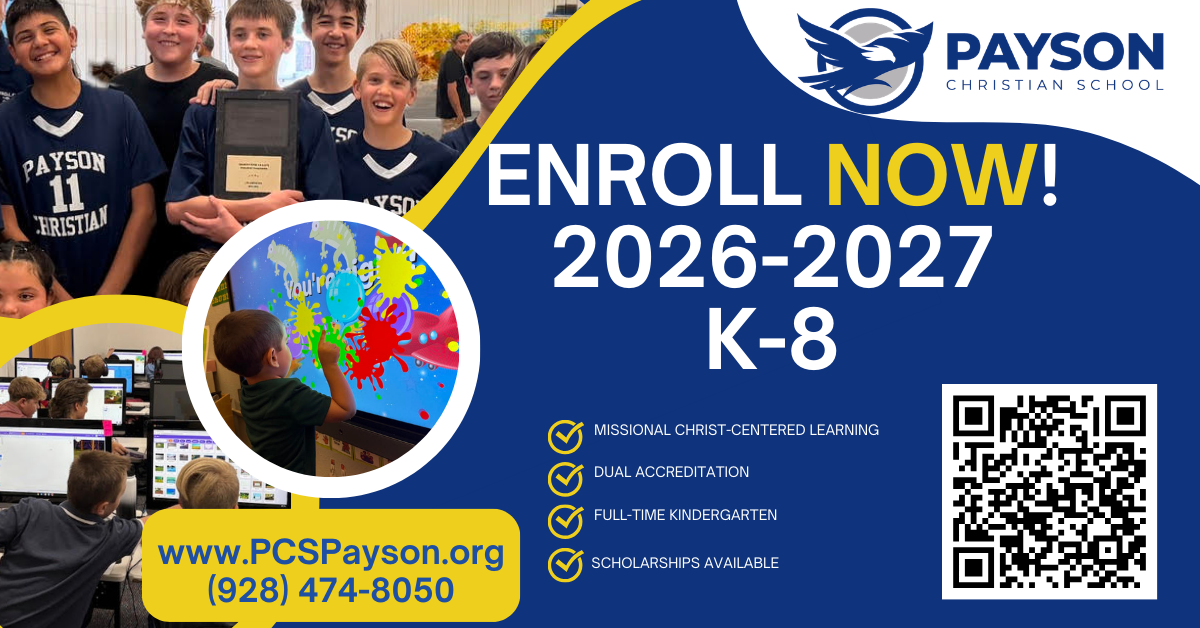Welcome to Payson Christian School, Celebrating 40 years 1986 → 2026.